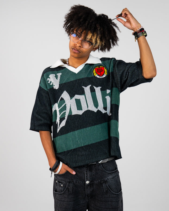 Elevate your casual wardrobe with our black/forest knit t-shirt, designed for a modern and oversized fit with a slightly cropped length. This tee combines comfort and unique detailing, making it a must-have addition to your collection.